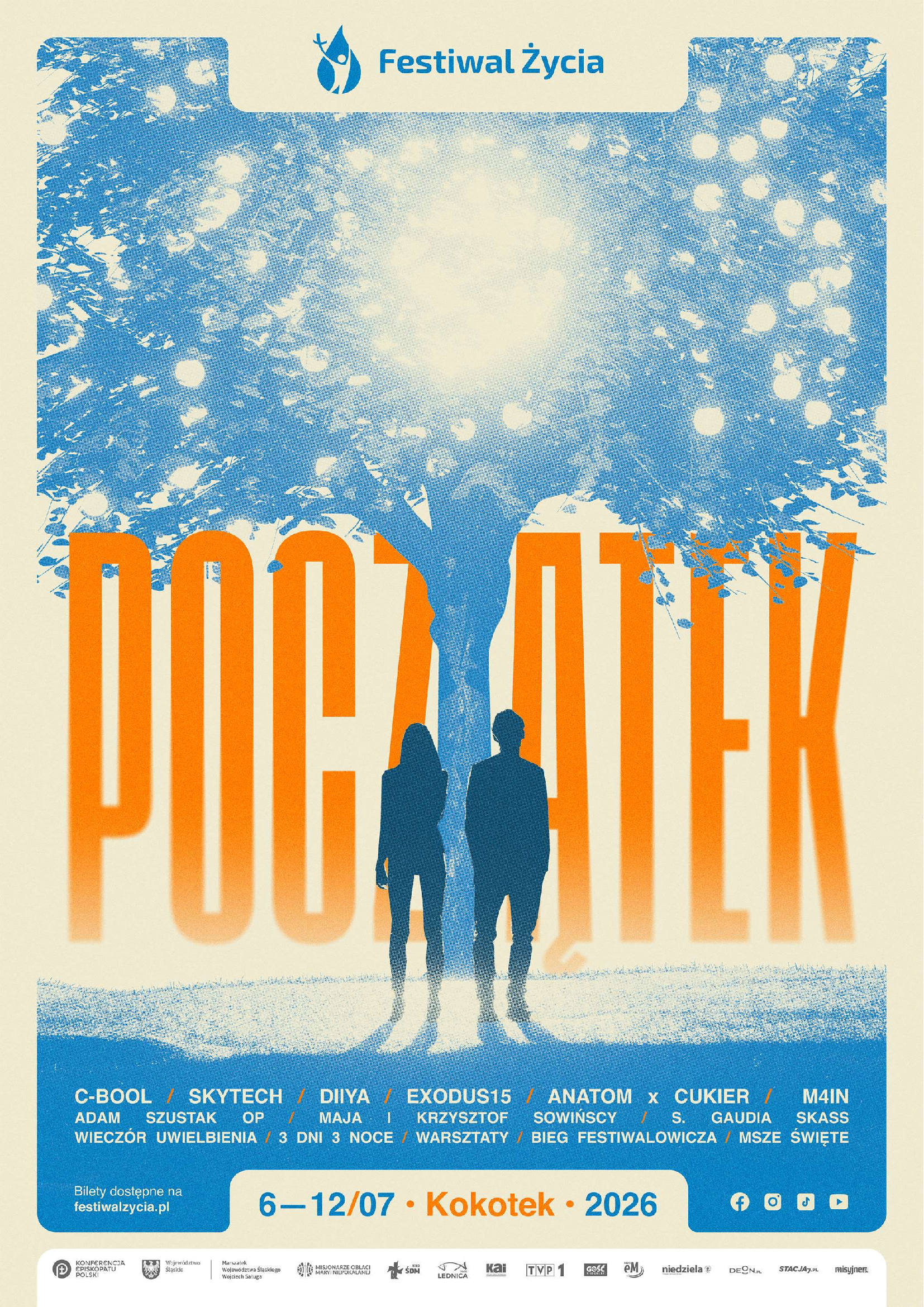 Najbliższy Festiwal Życia w Kokotku odbędzie się od 6 do 12 lipca pod hasłem „Początek”, a biblijnymi bohaterami tegorocznej edycji będą Adam i Ewa. Koncerty zagrają C-BooL, Skytech, Diiya, exodus15, Anatom i Cukier, a wśród prelegentów usłyszymy m.in. o. Adama Szustaka OP, Maję i Krzysztofa Sowińskich, s. Gaudię Skass czy naukowca dr. Mariusza Gogóla.